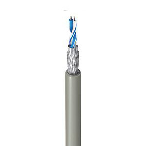 Belden 9841 1-pair low capacitance Computer Cable with 24AWG stranded (7 x 32) tinned copper conductors, polyethylene insulation, overall Beldfoil? aluminum foil-polyester tape (100% coverage) + tinned copper braid shield (90% coverage) and chrome PVC jacket. Belden multipaired cable delivers low voltage analog data and signal transmission within enclosures from controllers and I/O’s to devices such as temperature and pressure sensors, relays, valves, meters, thermocouples, solenoids, actuators, contactors, push buttons and alarms. This computer cable is designed for EIA RS-485 applications.