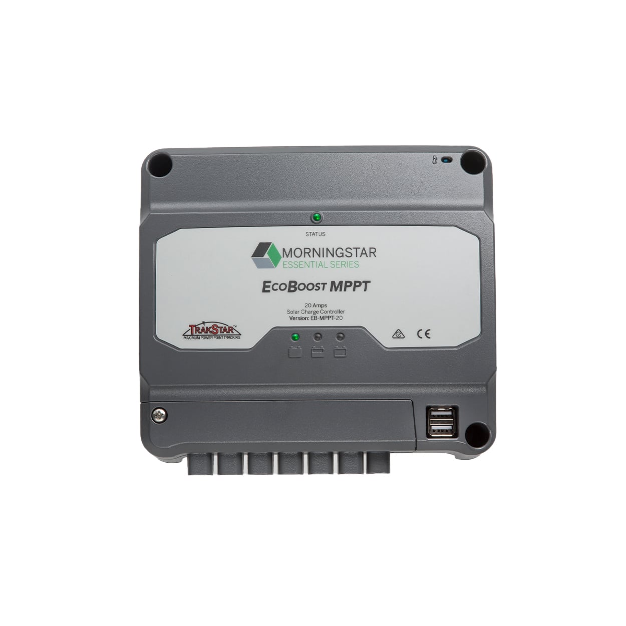 TThe EcoBoost MPPT™ solar charge controller brings Morningstar’s proprietary TrakStar Technology™ to our new line of Essentials controllers and accessories. The EcoBoost controllers automatically detect 12 or 24-V system configurations. They are highly efficient and accurate controllers designed to ensure that batteries attain a complete state of charge
