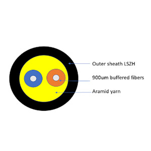 Opterna flat drop indoor cables are constructed with a flat profile jacket containing one, two or four fibers. The optical fibers contained in the center of the cable are protected by dielectric strength members made of fiberglass reinforced plastic (FRP) embedded in the jacket on opposite sides of the fibers. The FRP strength members add mechanical strength to the low-profile fiber optic cable and protect the 250 ?m optical fibers against stress during installation and after installation.